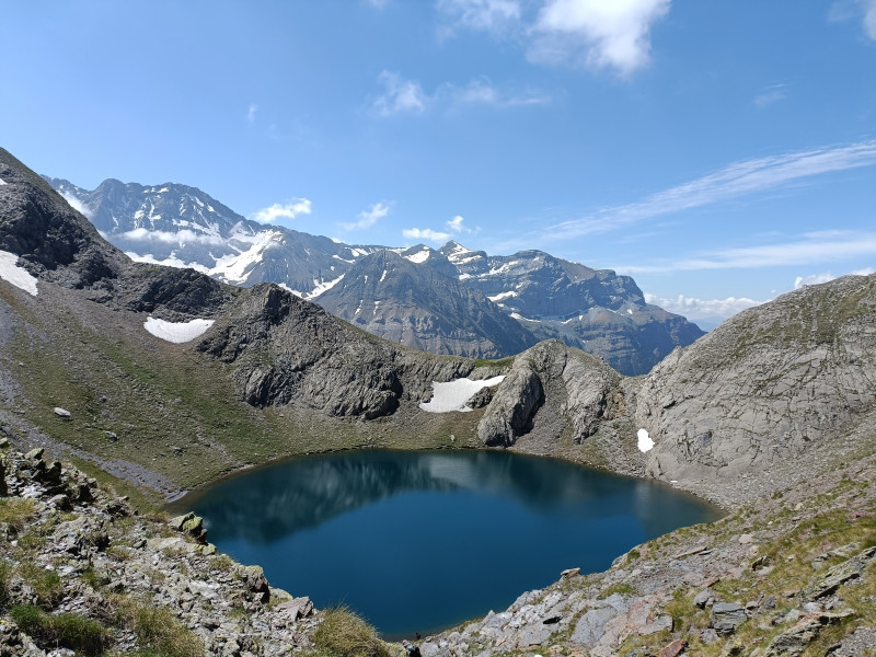 Le lac de la Bernatoire est situé en limite de frontière avec l'Espagne. Pour rejoindre le lac, nous empruntons un peu avant le barrage d'Ossoue un petit pont et un sentier qui monte vers le sud-ouest sur une pente assez raide pour rejoindre le GR et la cabane de Lourdes.