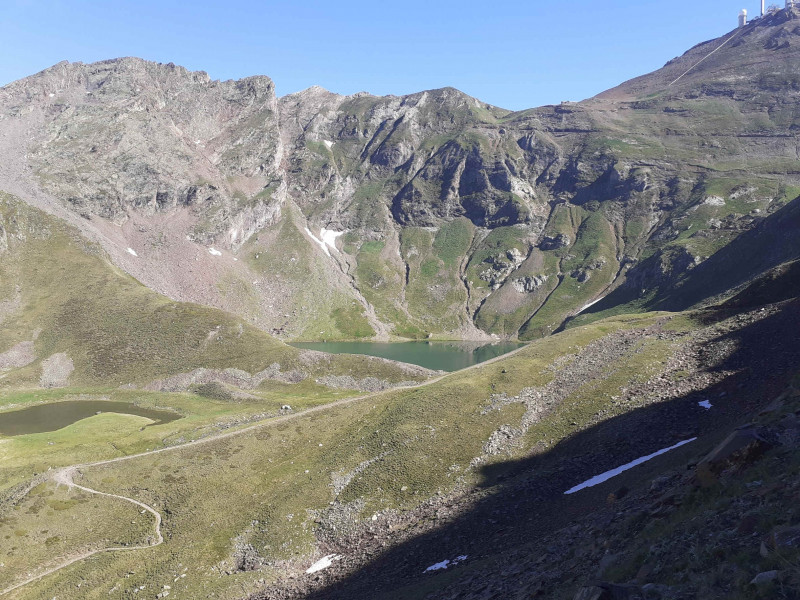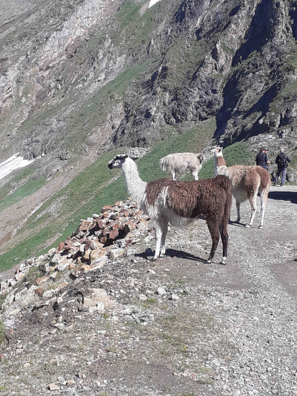 près de l’ancienne station météo (Dès les débuts de l’observatoire du Pic, chaque jour une personne descendait de là-haut au col de Sencours afin de faire les relevés météo), construction en perpétuels travaux, un troupeau de lamas, rejoindre l’hôtellerie des Laquets (Construite entre 1930 et 1933, elle a contribué à "accompagner le développement du site en hébergeant les scientifiques et les acteurs de l'observatoire pendant l'époque de la découverte de l'observation du ciel".) A noter qu’un projet exceptionnel va réhabiliter cet hôtel pour augmenter la capacité d’accueil du pic.