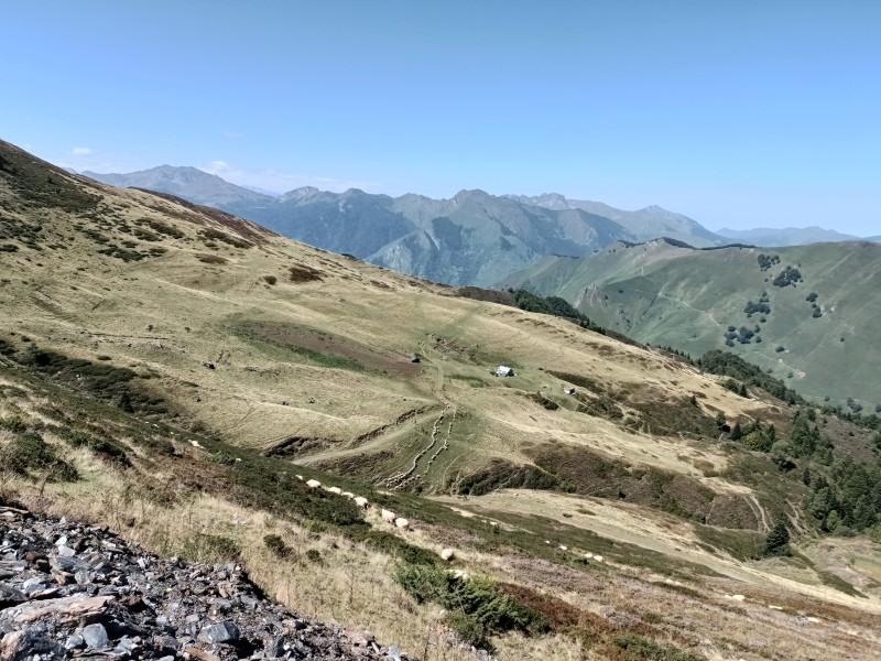 Nous poursuivons notre randonnée à flanc de montagne vers les cabanes pastorales de Gros que nous laissons à notre gauche avant de nous arrêter pour la pause déjeuner.