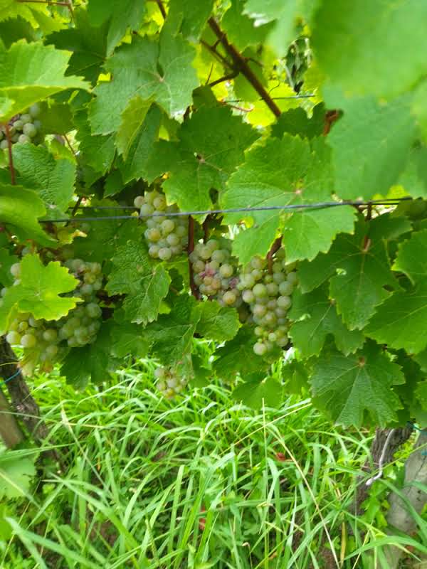 De belles grappes de raisins attendent les vendanges. Des rosiers sont plantés en bout de chaque rang de vigne car ceci étant sensibles  à l’oidium et à la moisissure, le vigneron peut traiter ses vignes avant l’apparition de ces maladies.