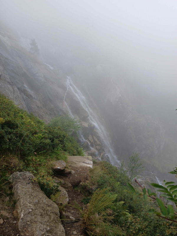 La descente n'est qu’une formalité malgré la visibilité réduite. On entend plus la cascade qu’on ne la voit.