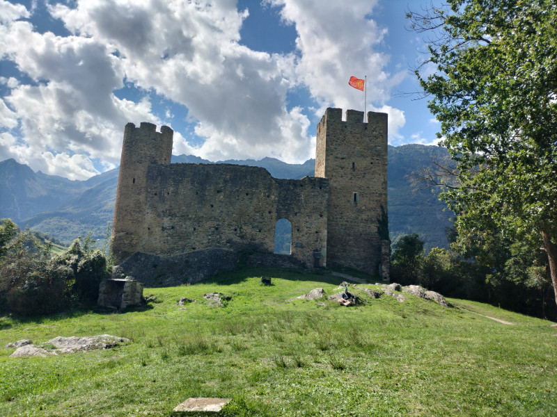 Après avoir franchi le pont du Bastan nous descendons vers le château Ste Marie où nous nous installons pour notre pique nique et il faut préciser qu’il est 13 h donc un peu en retard mais qu’importe l’heure , l’appétit est là ainsi que la bonne humeur bien sûr … Il fait bon et le soleil nous accompagne …