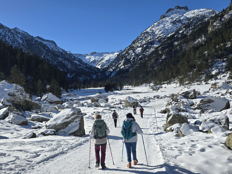 En ce jeudi 16 janvier il ne faisait pas chaud sur le parking d'Intermarché à 9h00   et les 12 randonneurs présents ont rempli 3 voitures pour se rendre à Cauterets.