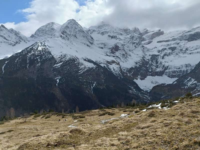 Nous nous installons pour déjeuner auprès d'une cabane sur le plateau de Bellevue qui porte bien son nom puisque'il nous offre un point de vue exceptionnel sur l'amphithéâtre de Gavarnie, sa Grande Cascade, et ses sommets enneigés.