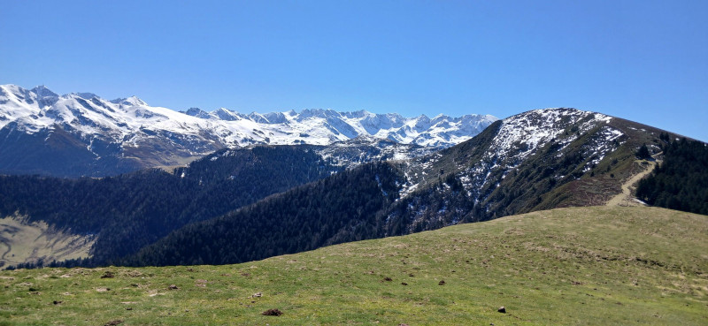 Arrivés à la cabane du Soum de Trées, nous filons vers le sud pour une longue crête avec vue sur la vallée de Castelloubon à gauche et celle d'Argelès à droite.