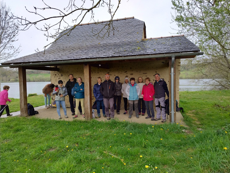Nous repartons après avoir rangé nos k-way, en effet plus de pluie…. C’est la deuxième partie de notre randonnée. Nous passons devant la salle des fêtes du lac bien connue pour de nombreuses manifestations ( mariages, concerts, spectacles).
