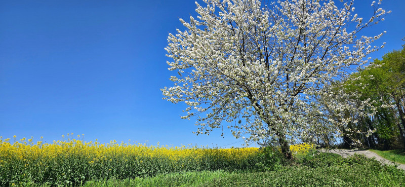 de fleurs et ce ciel bleu qui illumine toute cette campagne.