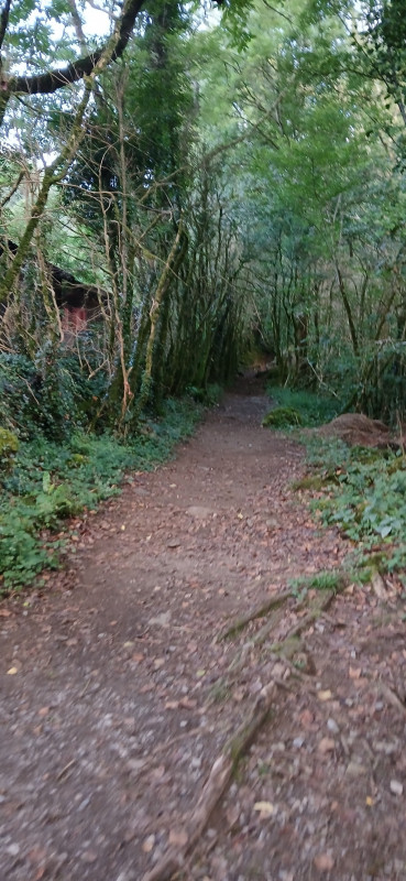 C'est un long sentier sous les arbres que nous allons parcourir, sentier rendu boueux, glissant par les sabots des vaches et leurs déjections.