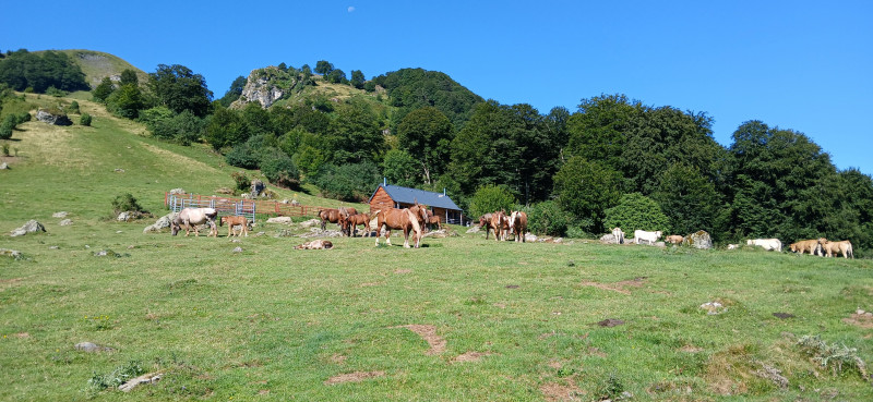 débroussailleuse nous accompagne depuis un long moment. Deux hommes sont en plein travail au-dessus de nous. L'un deux descend à notre rencontre et nous explique son rôle au sein de « La Réserve Nature du massif Pibeste Aoulhet » dont il est salarié stagiaire avec pour mission entre autre le comptage des papillons, si si ça existe.