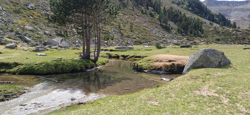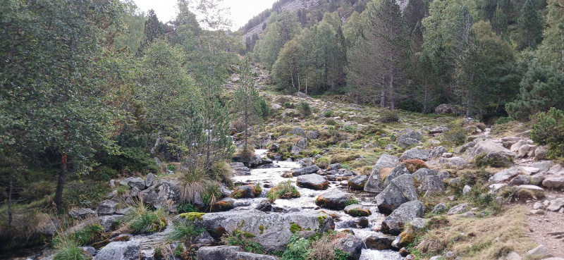 La montée se fait sur un sentier bien marqué, tantôt pentu et bien pentu, tantôt dans les gros blocs de rochers, tantôt longeant le ruisseau d'Aygues Cluses avec ses méandres, ses zones humides magnifiques et