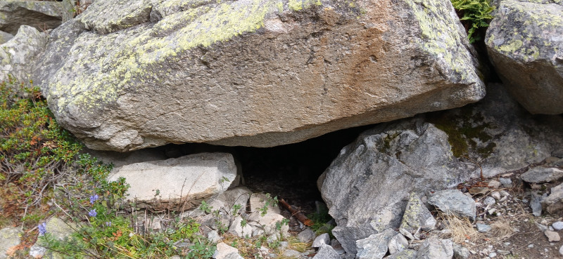 ses pins à crochets. Nous passons devant un abri sous roche et près de la cabane de la pègue.