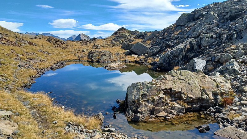 Départ de la randonnée à 10h30, rando commune jusqu'à la cabane de Lourdes où le groupe se divise en deux: 5 randonneurs s'arrêtent à la cabane pour profiter des marmotes, d'une balade vers le lac de la Bernatoire et d'un temps de repos.
