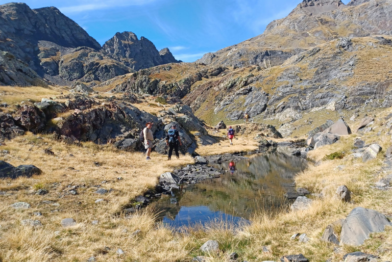Départ de la randonnée à 10h30, rando commune jusqu'à la cabane de Lourdes où le groupe se divise en deux: 5 randonneurs s'arrêtent à la cabane pour profiter des marmotes, d'une balade vers le lac de la Bernatoire et d'un temps de repos.