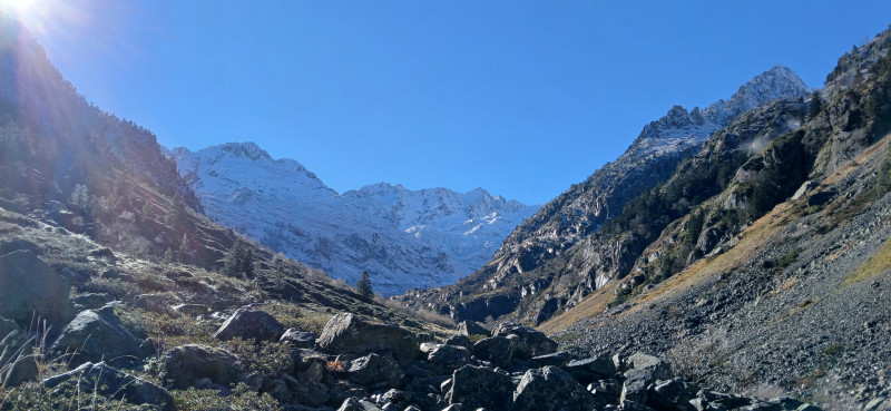 Le retour, malgré la brume qui monte, nous permet d'admirer le long du sentier, des troupeaux (plusieurs dizaines d’individus à chaque fois) de bouquetins dont certains à moins de 50 m et d'autres qui traversent notre route. Le vent glacial du retour incite la plupart à prendre un chocolat chaud à Argelès.