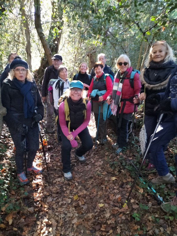 Chacun s'assoit en évitant les ronces, ça grignote, ça papote, le ciel est bleu...marine ! hein ?!?! euh t'es certaine Monique c'est pas plutôt bleu ciel ??!!?!?? 😁 Ça plaisante comme souvent, puis on partage du café, un carré de chocolat, l'heure des douceurs avant de reprendre le chemin.