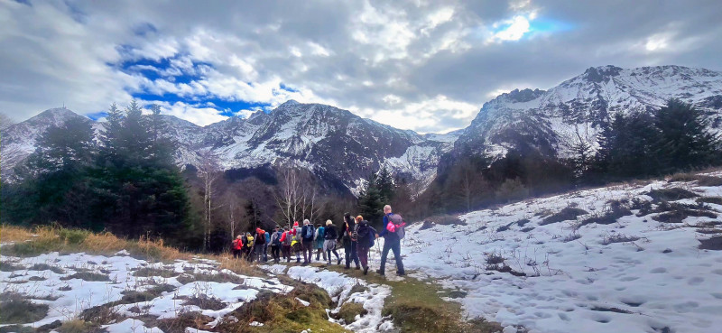 Il est 9h à Pontacq, 24 randonneurs sont présents pour le départ vers le Chiroulet, certains et certaines ont suivi le dress code "pull moche" ou tout ce qui touche à Noël et ce fut tout un groupe riche en couleurs prêts pour cette journée festive.