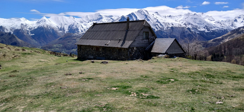 Pendant plus de 2 kilomètres, la montée se fait sur un vieux chemin de bergers, bien pentu, bordé de magnifiques granges, la plupart restaurées, jouissant d'un panorama splendide sur les sommets encore bien enneigés.