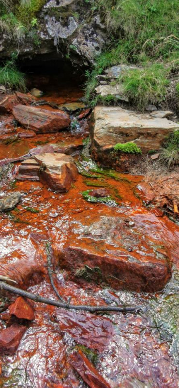 Après le repas, 9 assoiffés de grands espaces rejoignent les sources de la Reine2, 2 sources d'eau ferrugineuse (L'alcool non, mais l'eau ferru, l'eau ferrugineuse oui !, disait Bourvil, citation pour les plus de 60 ans). Deux trous suintent en continu, déversant une eau couleur de rouille, étonnant et très joli spectacle.