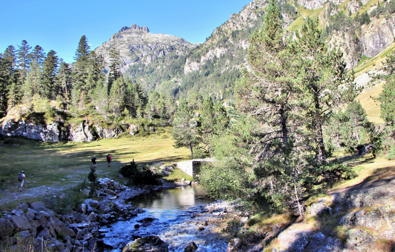 Au départ, le groupe a marché à l'ombre de la forêt puis le sentier, passé le plateau du Clot, a pris de l'altitude par des marches irrégulières, toujours au bord du Marcadau et de ses belles cascades.