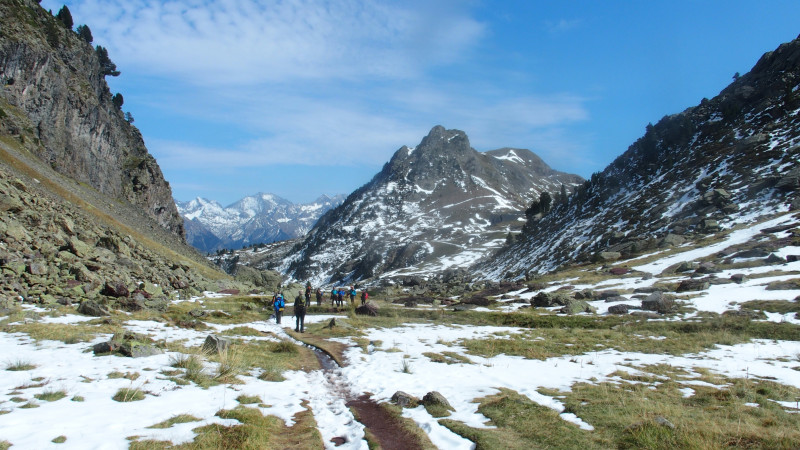 La descente fut un peu délicate, boueuse donc glissante, mais nous offrant encore un magnifique panorama sur la punta de garganda et plus loin sur les terribles pics d’enfer où nous n’irons jamais poser nos godillots.