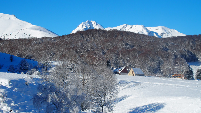 Le paysage est magnifique avec les sapins couverts de neige se détachant sur  fond de ciel bleu, avec l'observatoire du