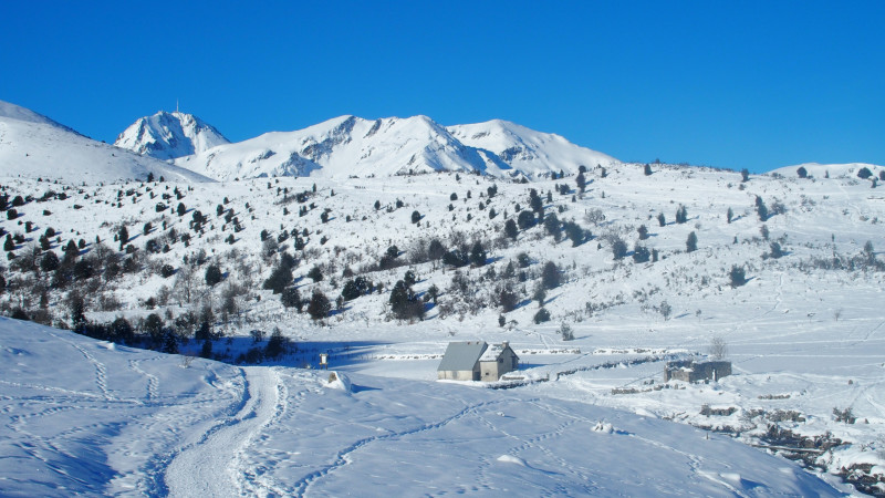 Pic du Midi, comme une bougie posée sur un gâteau meringué, avec les cristaux de neige scintillant sous la lumière.