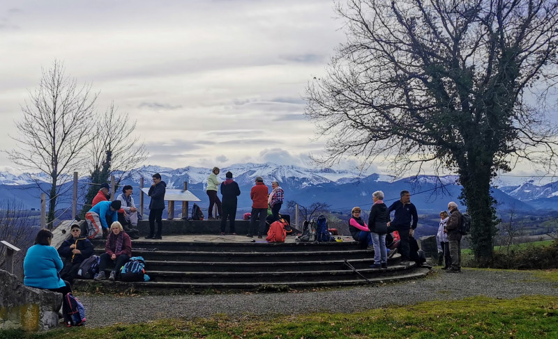 Une magnifique esplanade avec vue sur les Pyrénées et la plaine de Nay, nous a permis de poser nos sacs et bâtons et de sortir le casse-croûte pour un peu de réconfort .