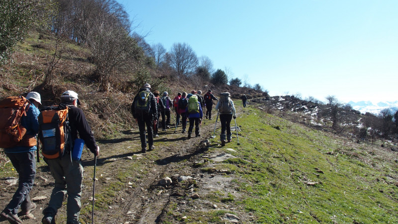La température est déjà agréable et en regardant le décor exposé au sud , on a vite compris que les raquettes fortement recommandées par les accompagnateurs, resteraient dans le coffre.