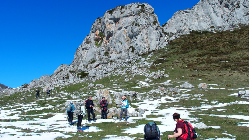 Après la collation, pendant que certains lézardent au soleil, se reposent et /ou discutent , 6 valeureux aventuriers se hissent sur les hauteurs du Soum de Leiz pour admirer le panorama, à une portée de voix du groupe.