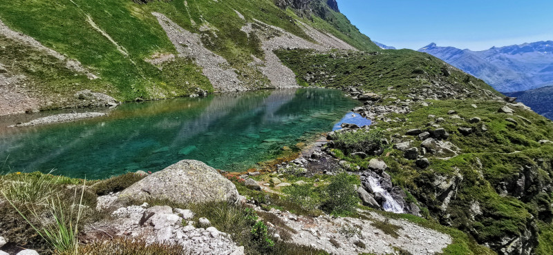 détachent pour aller se mirer dans les eaux turquoises du lac d'Antarrouyes, après passage près d'un vaisseau spatial planté sur les hauteurs, à moins que ce ne soit un pluviomètre!