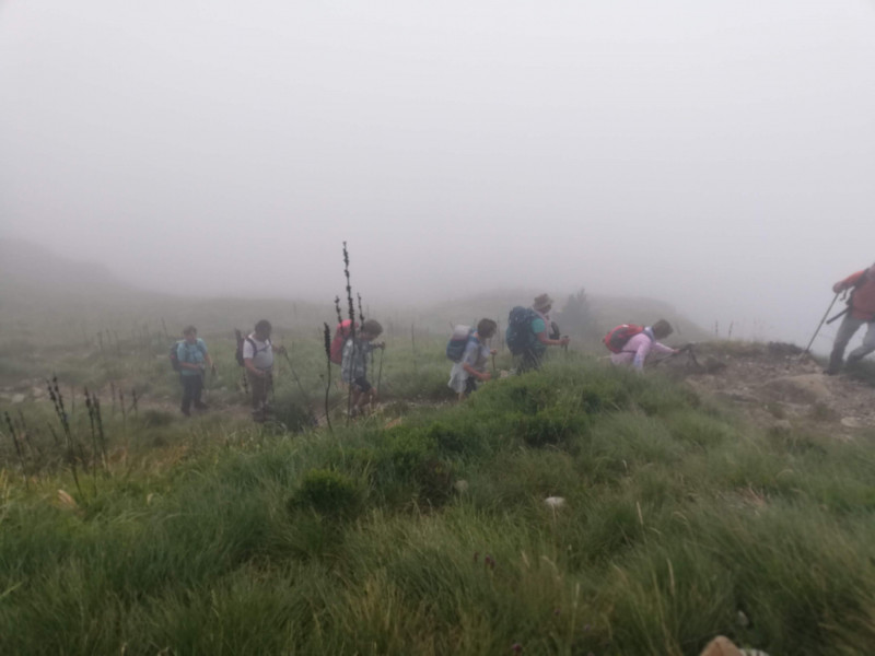 C'est donc à partir de 1400 m que nous entamons dans la brume la montée vers le lac avec ses interminables lacets à flan de montagne.