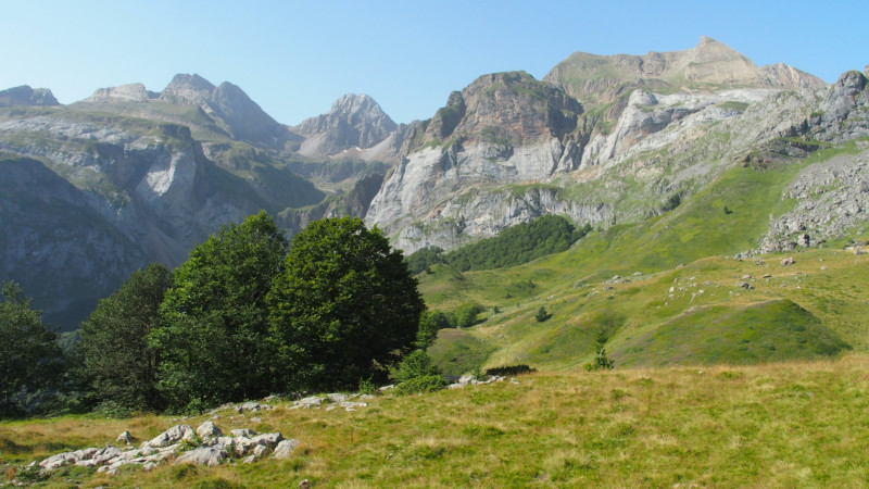 Enfin après 2 bonnes heures de marche et 500m de dénivelé à la louche, le groupe està l'approche du lac d'Estaens ou Ibon de Astanès si l'on veut parler la langue du pays.