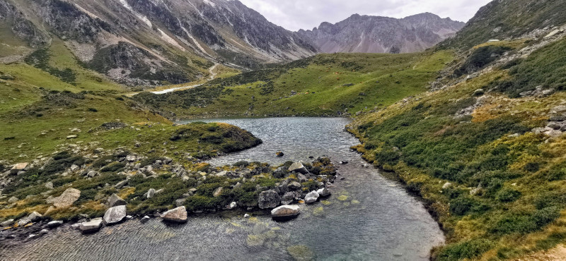 Arrivée Payolle à la fraîche, ce fut une excellente idée car temps chaud, lourd, ciel voilé. Cette rando nous mène le long de la vallée de la Gouarde au lac situé à 1963m d'altitude  d'une superficie de 0,7 hectares, 770m de dénivelé positif et d'environ 17kms sans aucune difficulté.