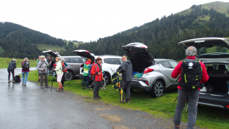 Pendant que nous nous équipons au col de Beyrède, un petit crachin nous tombe dessus.