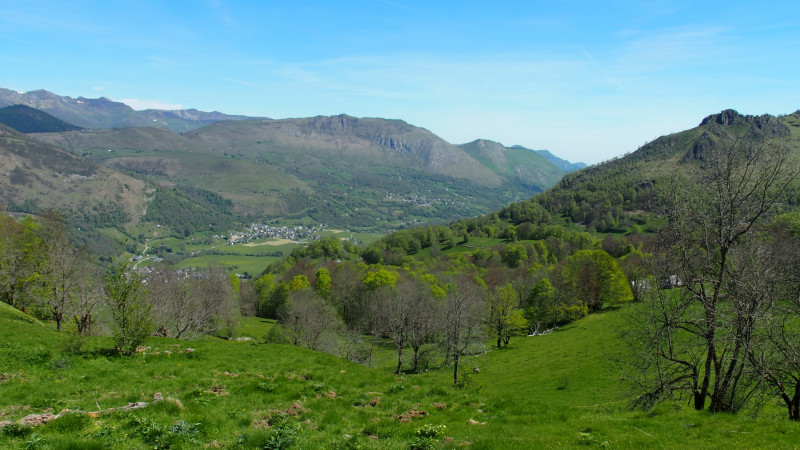 Stationnement en plein centre d’Arrens-Marsous pour débuter la randonnée vers le pic de Pan et la col de Bordères (1156m) au couvert d’un sentier boisé et