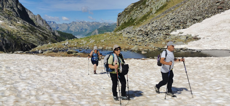 Heureusement un petit vent frais nous pousse dans le dos. Passé les 2000m d'altitude il reste encore beaucoup de névés qui rendent la progression un peu plus difficile .