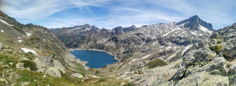 11H45: Nous arrivons au col d'Arrious (900m de dénivelés avalés ) d'ou nous pouvons voir le lac d'Artouste en contre-bas.