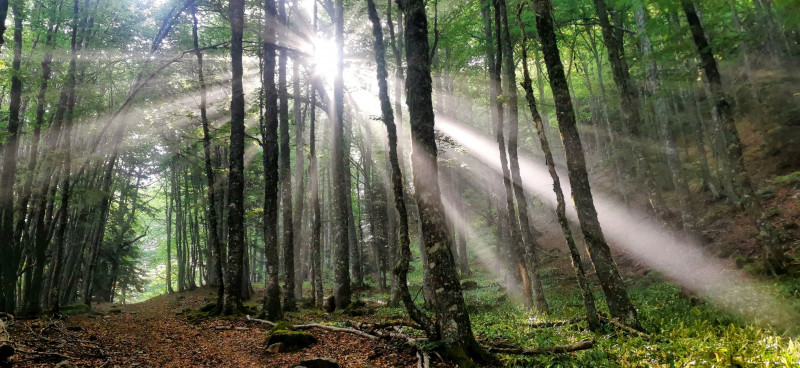 9H15 : Départ de la rando et ça monte déjà bien . Après une heure de marche et être sortis du bois sous le soleil, déjà 370m de dénivelé au compteur.