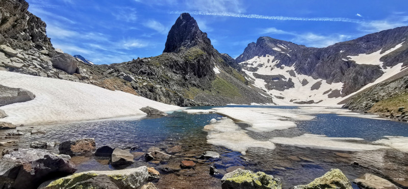 Le vent est décidément trop frais et trop fort au col, nous décidons donc de nous rendre au lac d'Arrious à quelques centaines de mètres de là pour trouver un peu d'abris pour le repas.