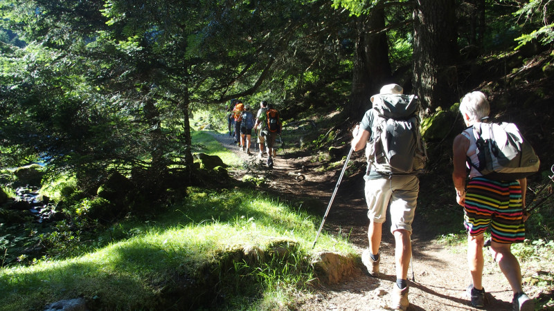 Effectivement, dès le matin la journée s'annonçait chaude si bien que ce ne sont que 9 courageux qui oseront braver la canicule et prendre la direction de la vallée de Lesponne pour rejoindre le point de départ de cette randonnée vers le lac de Peyrelade situé à 1920 m d'altitude.