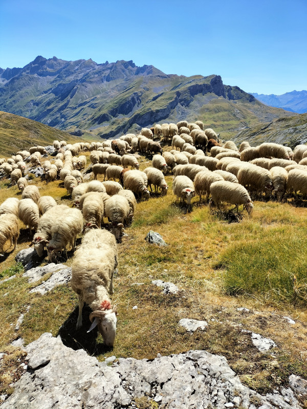 Les sentiers sont bien balisés et nous partageons cet espace avec tout le bétail que les bergers viennent surveiller. Ils nous ont fait part de leurs inquiétudes car les torrents et les petits lacs sont à sec, et l'herbe manque. Ils attendent des jours pluvieux !!!!!