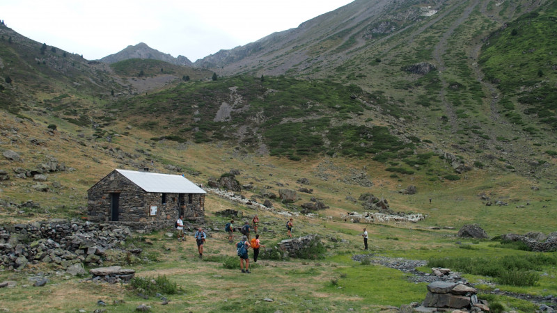 Après une heure trente, nous débouchons sur le plateau où est bâtie la jolie cabane d'Auloueilh restaurée en 2013. (Pour ceux qui veulent en savoir plus: https://www.ladepeche.fr/article/2013/09/05/1701650-aulon-le-courtaou-d-auloueilh-rehabilite.html)