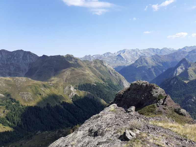 Le panorama est splendide vers le Sud, bien sûr, et aussi à l'ouest vers le vallon d’Aas de Bielle avec au loin le pic d'Annie.
