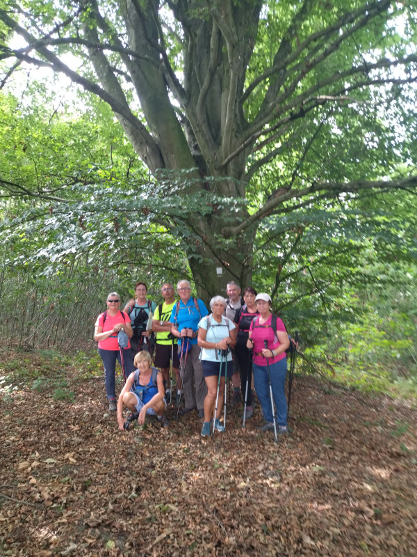 L’heure du pique-nique approche : cherchons l’endroit idéal !!!  ça sera pour certains sur un talus en bordure du sentier, pour d’autres un tronc d’arbre : chacun a trouvé sa place !!!!  C’est le moment détente et les plaisanteries fusent  comme il se doit ….  Nous reprenons nos sacs et nos bâtons pout la dernière partie de notre randonnée.