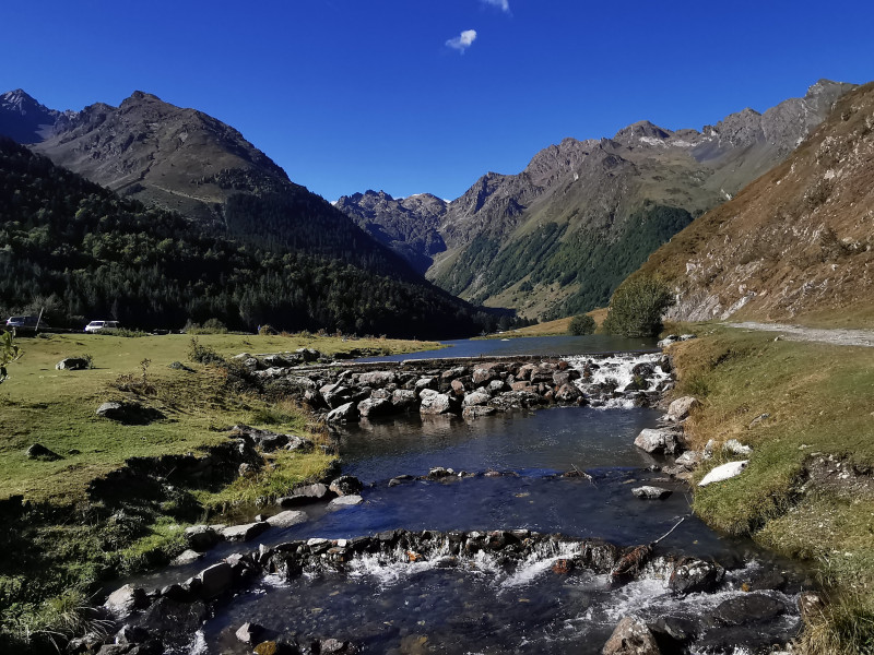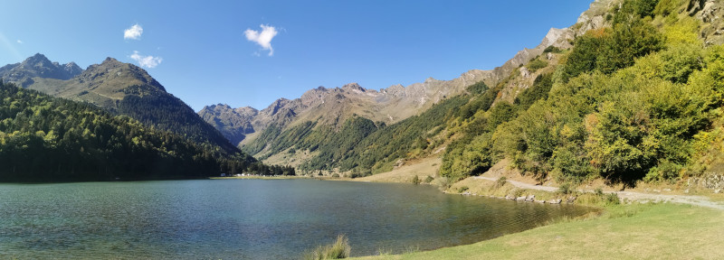 Après 1 h de route le mini convoi de deux voitures arrive au Lac d'Estaing dans cet