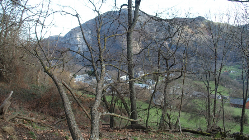 Après la traversée du petit village de 133 âmes selon l'INSEE, nous empruntons un sentier qui grimpe à travers bois et qui donne immédiatement une idée de l'ascension que nous aurons à effectuer jusqu'au pic d'Alian dont nous voyons le sommet tout proche.