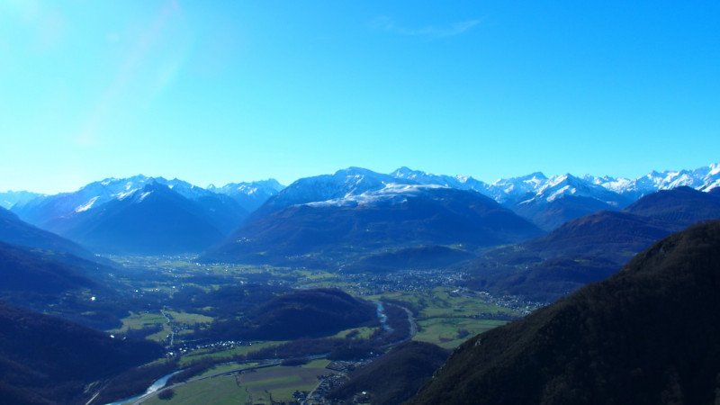 ET oui, ça grimpe fort dés les premiers hectomètres et ça n'arrêtera pas avant d'atteindre le sommet. Le groupe s'étire sur le flanc de la montagne, toutefois, rien ne presse et le temps et le paysage sont là pour assurer le spectacle, avec une large vue sur Lourdes et au-delà la ville de Tarbes et le piémont Pyrénéen.