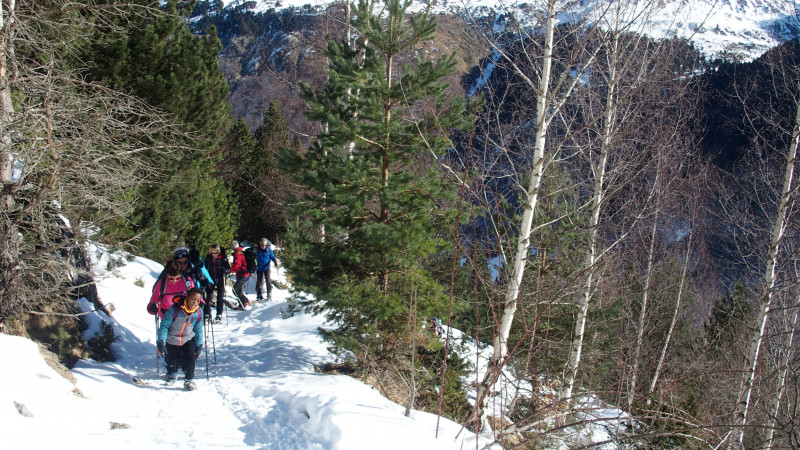 Nous étions 12 au départ de Pontacq décidés à chausser les crampons ou les raquettes selon ses préférences pour une virée de 8,5 km et 450 m