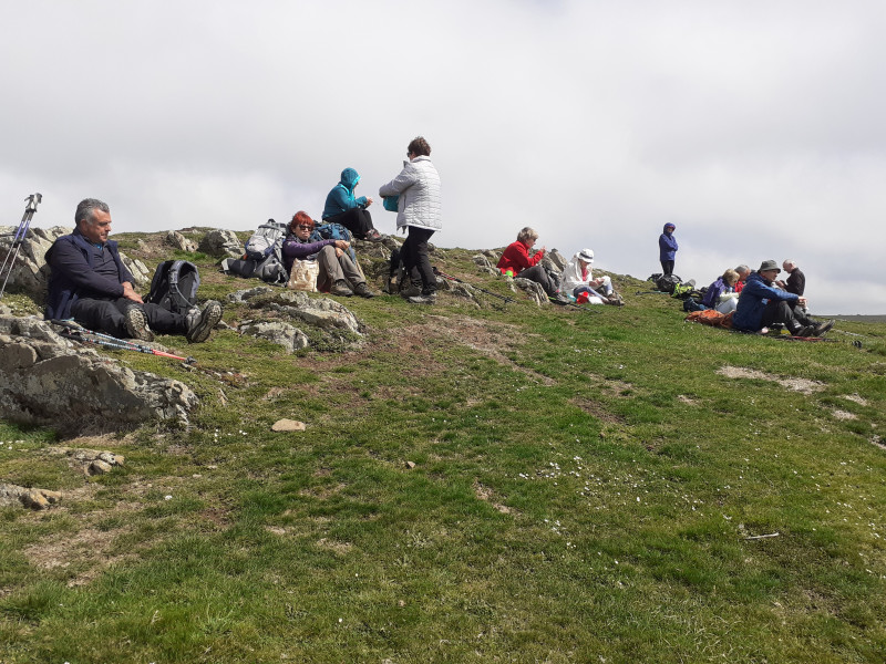 En effet, la dernière rampe a provoqué des crampes sur une valeureuse randonneuse. Accompagnée par son cher et tendre, elle a évité la sente sommitale pour nous attendre plus bas.