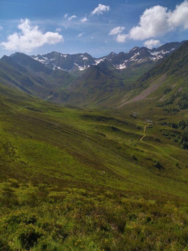 Nous voilà partis, en grimpant par le sentier pierreux qui nous mène au point de départ des deux randonnées possibles: le lac d'Isaby et le lac d'Ourrec. Nous prenons vers la droite pour commencer la descente qui nous ménera au lac d'Isaby pour une distance de 10 kms environ et un dénivelé de 200 m.